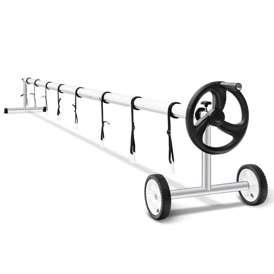 18 FT Solar Pool Cover Reel Set with Hand Crank & Wheels, Aluminum Solar Swimming Inground Cover Blanket Reel Roller