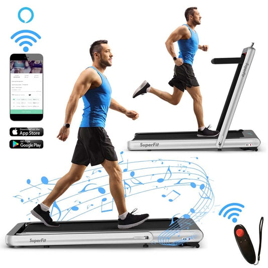2 in 1 4.75HP Folding Treadmill, Under Desk Electric Treadmill, Portable Running Machine with APP Control, LED Touch Screen, Bluetooth Speaker