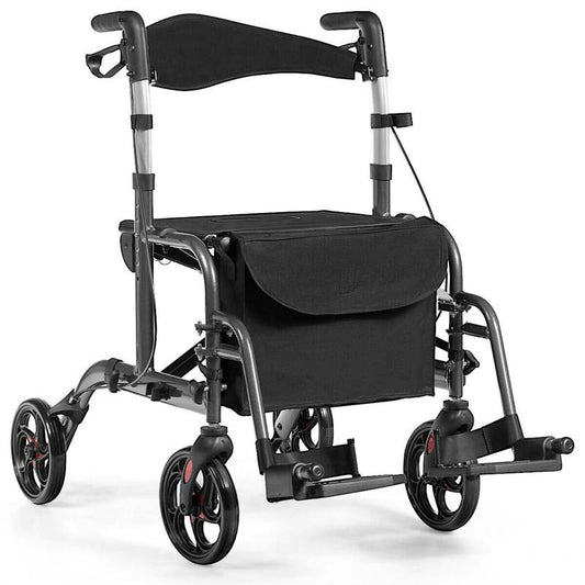 2 in 1 Rollator Walker Wheelchair Folding Medical Walker Rolling Transport Chair Mobility Walking Aid