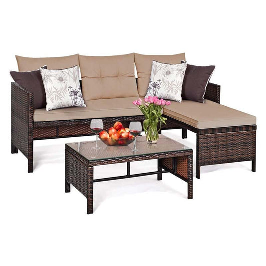 3 Pcs Rattan Patio Furniture Set Outdoor Conversation Sofa Set with Loveseat Chair & Coffee Table