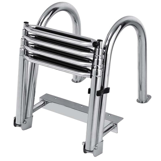 4-Step Folding Pontoon Boat Ladder with Pedal Handrail, Stainless Steel Telescoping Swimming Pool Deck Ladder for Yacht Marine
