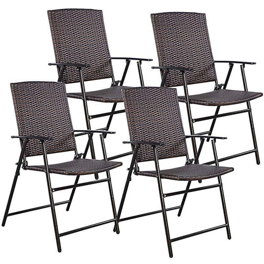 4-Pack Rattan Patio Folding Dining Chairs with Armrest & Footrest, Outdoor Portable Wicker Lounge Chair, Stackable Pool Lawn Chair