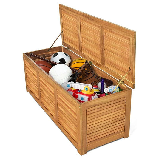 47 Gallon Acacia Wood Deck Box in Teak Oil, Large Outdoor Storage Box, Deck Storage Bench for Patio