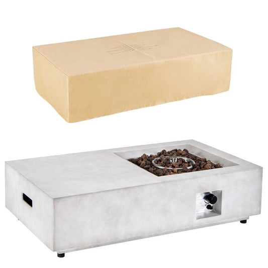 48" Concrete-like Propane Gas Fire Pit Table, 40000 BTU Outdoor Fire Pit with Lava Rocks & Cover