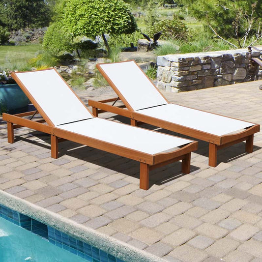 5-Position Wood Outdoor Patio Chaise Lounge Chair Pool Sun Lounger with Breathable Fabric