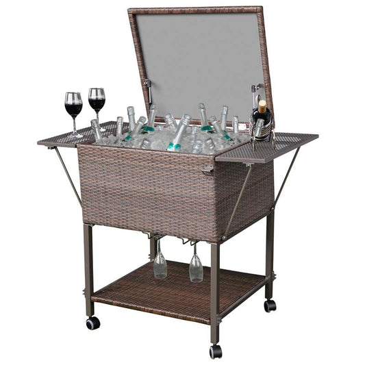 108 QT Rattan Rolling Beverage Wine Cooler Cart Outdoor Patio Side Table Bar Cart with Cooler & Lower Shelf