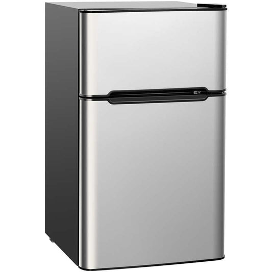 3.2 Cu.Ft 2-Door Compact Refrigerator Mini Freezer Cooler Fridge with Reversible Stainless Steel Door