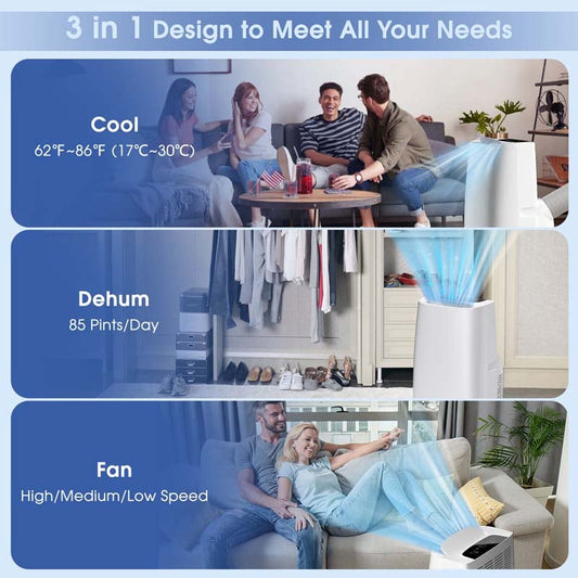 14000 BTU 4-in-1 Portable Air Conditioner with Heater, Cool Fan, Dehumidifier, Remote Control, 24H Timer