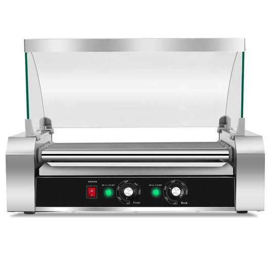 7 Non-Stick Roller 18 Hot Dog Roller Sausage Grill Cooker Machine with Glass Hood Cover, Commercial Household Hot Dog Rotisserie