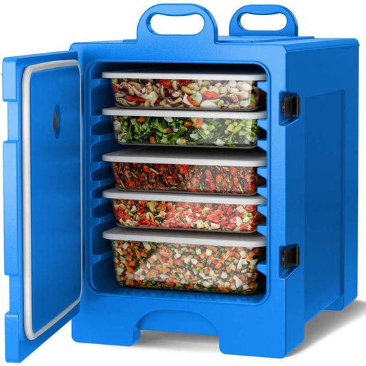 81 QT End-Loading Insulated Food Pan Carrier for 5 Full-Size Pans, LLDPE Portable Food Warmer with Fastener