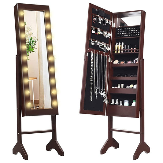 18 LEDs Large Standing Jewelry Armoire Cabinet with Full Length Mirror, 16 Lipstick Holder, 1 Inside Makeup Mirror