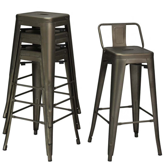 4Pcs 30" Metal Bar Stools Stackable Cafe Side Chairs with Removable Back, Stylish Counter Height Chairs for Kitchen Dining Rooms