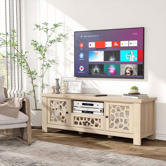 55" Retro TV Stand for 60 Inch TVs, TV Console Cabinet Entertainment Center with Mirror Doors, Drawer Open Shelf, Cable Hole