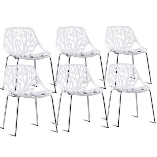 6 Pcs Hollow-Out Stackable Dining Chair Modern Outdoor Indoor Dining Side Chair Geometric Style Furniture