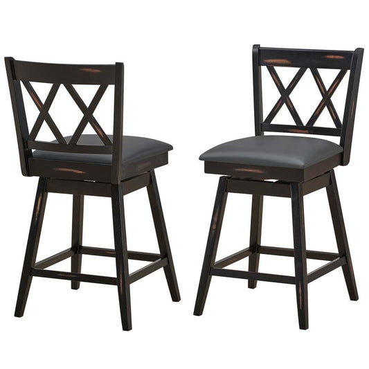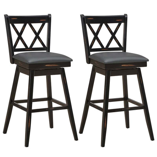 2-Pack Vintage 360° Swivel Bar Stools, Rubber Wood Counter Height Chairs with Non-Slip Foot Pads