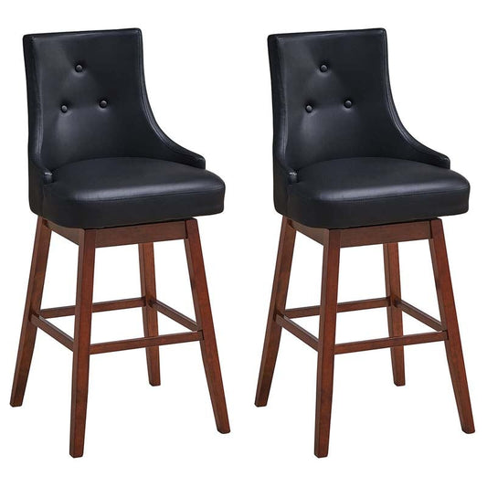 2-Pack 30.5" Wooden Swivel Bar Stools with Back & Leather Seat, Counter Height Pub Kitchen Dining Chairs
