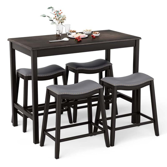 5 Pcs Space-Saving Dining Table Set with 4 Upholstered Stools, Counter Height Table Stools Set for Kitchen Dinette