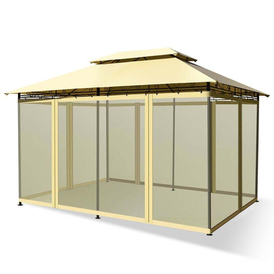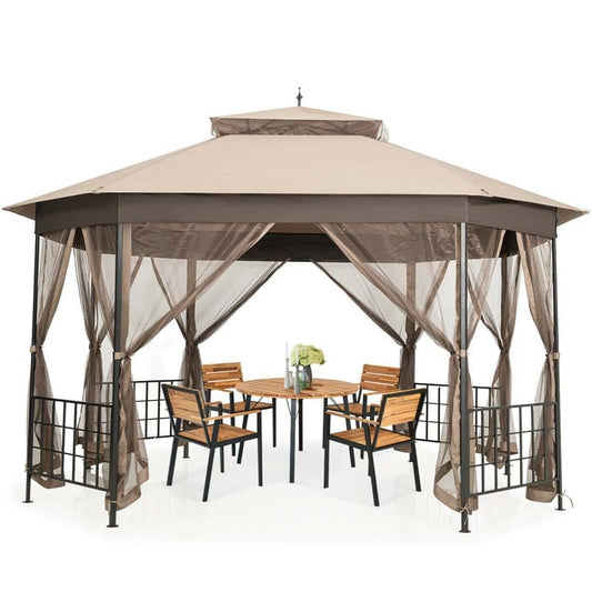 10 x 13 FT Steel Patio Gazebo with Mesh Curtains, 2 Tier Vented Roof Outdoor Canopy Gazebo Tent