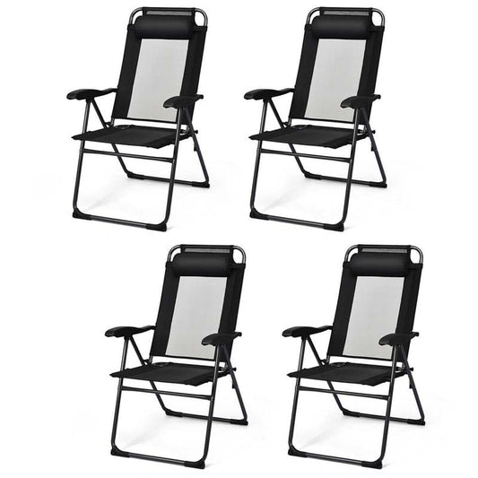 Set of 4 Patio Dining Chairs, 7-Positon Folding Lounge Chairs, Outdoor Portable Sling Chairs with Metal Frame