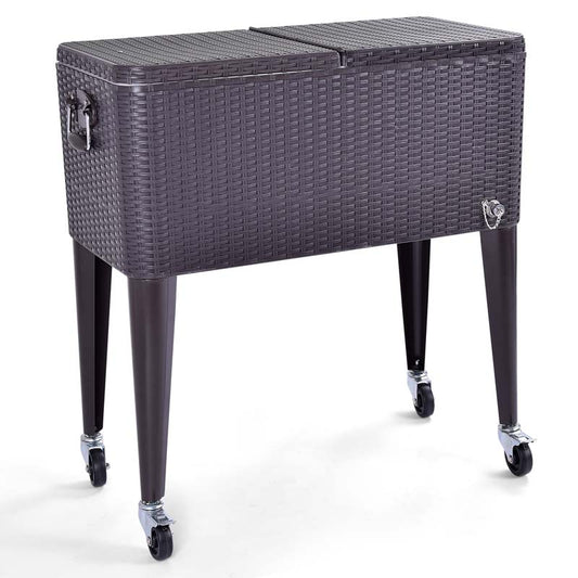 80 QT Rattan Outdoor Patio Rolling Beverage Wine Cooler Cart Portable Bar Cart with Bottle Opener & Cap Catcher