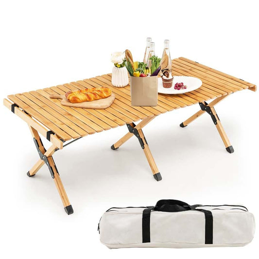 Folding Camping Table Portable Picnic Table with Carry Bag, Roll-up Bamboo Tabletop for BBQ Party Hiking