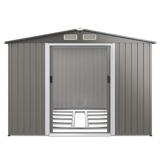 8 x 6 FT Outdoor Metal Storage Shed Garden Tool Storage Room with Foundation, 4 Louvers, Double Doors & Ramp