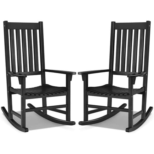 2 Pcs Acacia Wood Rocking Chairs High Back Outdoor Rocker for Porch Patio Lawn