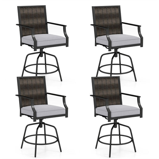 Outdoor PE Wicker Swivel Bar Stools Set of 2, Metal Frame Counter Height Patio Chairs with Back & Cushions for Patio, Garden, Deck