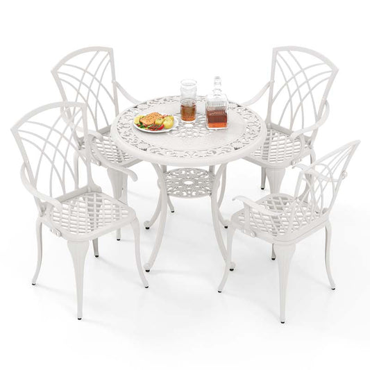 5 Pieces Retro Cast Aluminum Outdoor Round Dining Table Set with 2.5" Umbrella Hole & 4 Armchairs