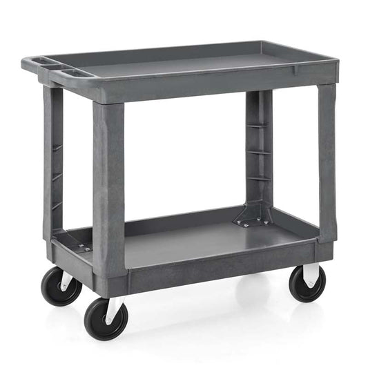 2-Tier Industrial Service Utility Cart Heavy-Duty PP Rolling Work Cart with 550 LBS Max Load and Storage Handle