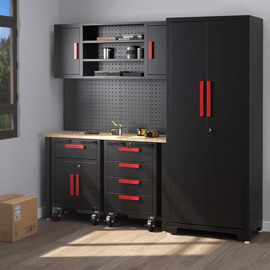 6-Piece Garage Organization Cabinets Set and Storage System with Pegboard & Rolling Chests, Tool Storage Chest for Workshop
