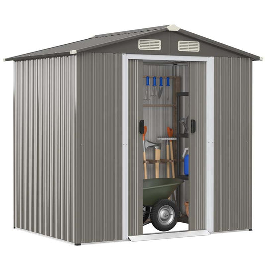 6 x 4 FT Outdoor Metal Storage Shed with Lockable Sliding Doors & 4 Air Vents, Waterproof Garden Tool Storage Room