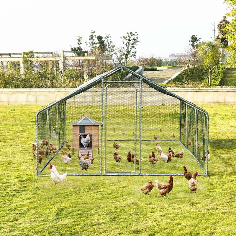 10' x 20' x 6.5' Galvanized Metal Large Walk-in Chicken Coop Cage Runs Hen House with Cover & Lockable Door