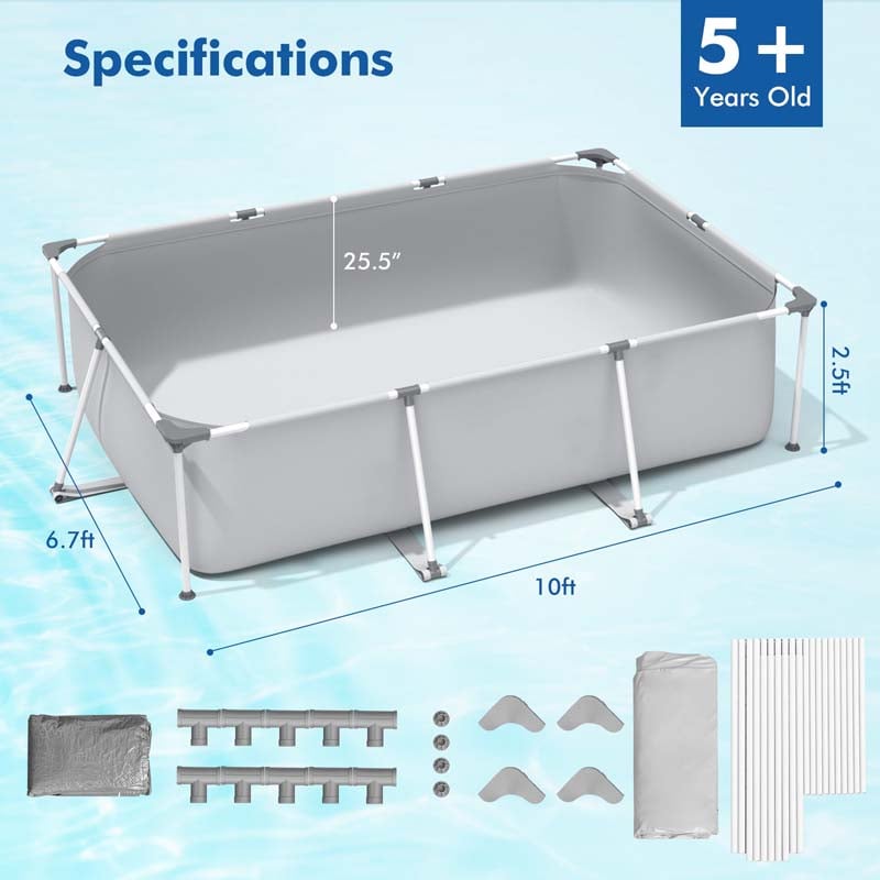 10 x 6.7 x 2.5 FT Rectangular Above Ground Pool with Pool Cover, CPSIA Certified Steel Frame Outdoor Swimming Pool