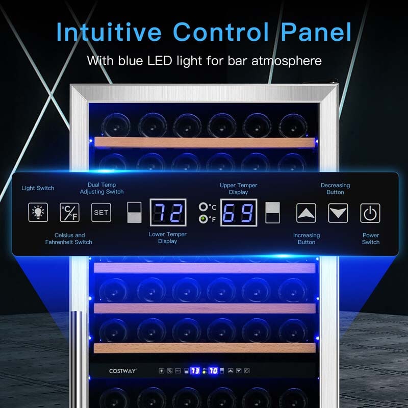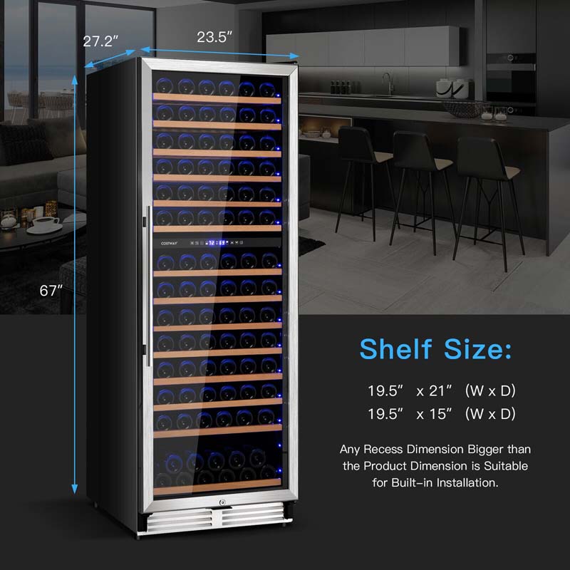 154-Bottle Dual Zone Wine Cooler Refrigerator Wine Cellar Freestanding or Built-in Wine Fridge