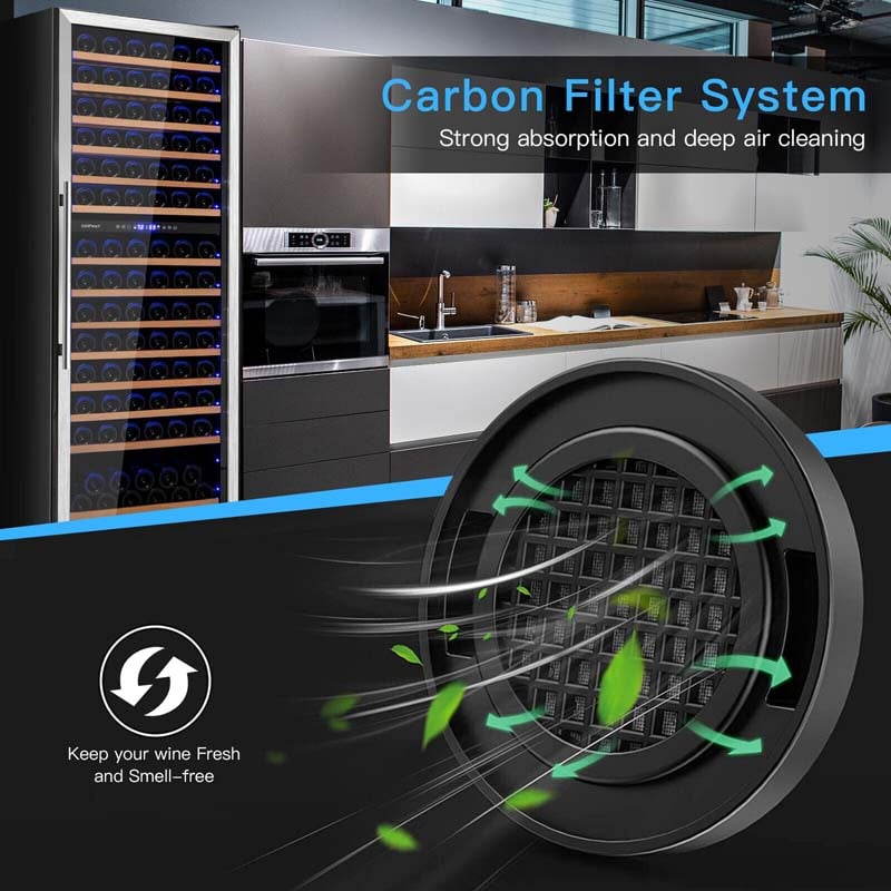 The integrated carbon filter system not only absorbs unwanted odors but also helps regulate internal humidity—creating a stable microclimate to protect corks and preserve flavor integrity over time.