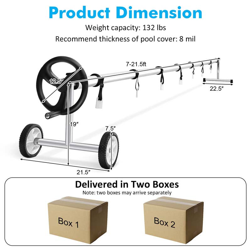- Adjustable Tube Length: Designed with 3-section lockable and telescopic aluminum tubes that extend from 7 to 21.5 feet, this reel adapts to a range of pool widths. Grooved construction prevents sagging over time.