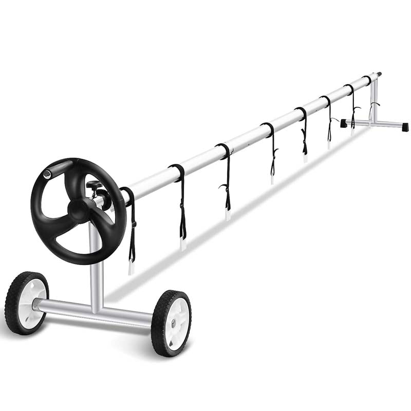 18 FT Solar Pool Cover Reel Set with Hand Crank & Wheels, Aluminum Solar Swimming Inground Cover Blanket Reel Roller
