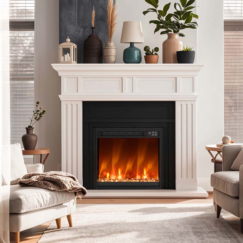 - Efficient Heating for Large Spaces: With 5120 BTU output and a 1500W power rating, this fireplace heater efficiently heats up to 400 sq.ft, perfect for larger rooms. The thermostat lets you control temperatures from 62°F to 90°F, ensuring a comfortable environment.