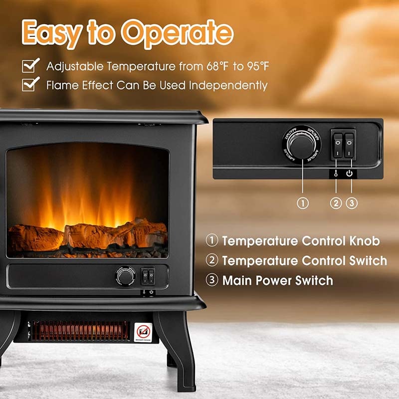 Designed for both comfort and convenience, this fireplace heater offers an adjustable thermostat ranging from 68°F to 95°F, allowing you to tailor the heat to your needs. Simply flip the main power switch to enjoy the flame effect independently—even without heat. With 1400W power and 4777 BTU output, it distributes warmth quickly and evenly. Quiet operation and built-in safety features ensure a safe and relaxing environment, while the cool-to-touch top surface is perfect for placing decorative items.