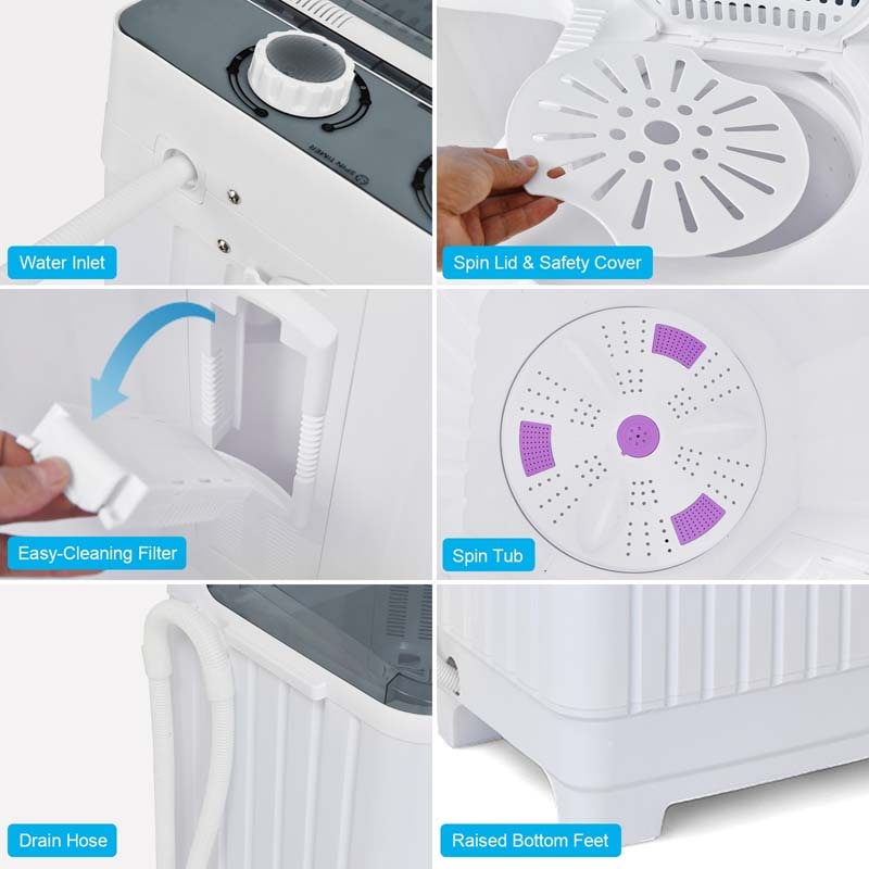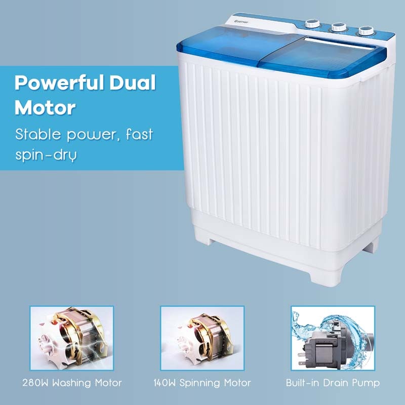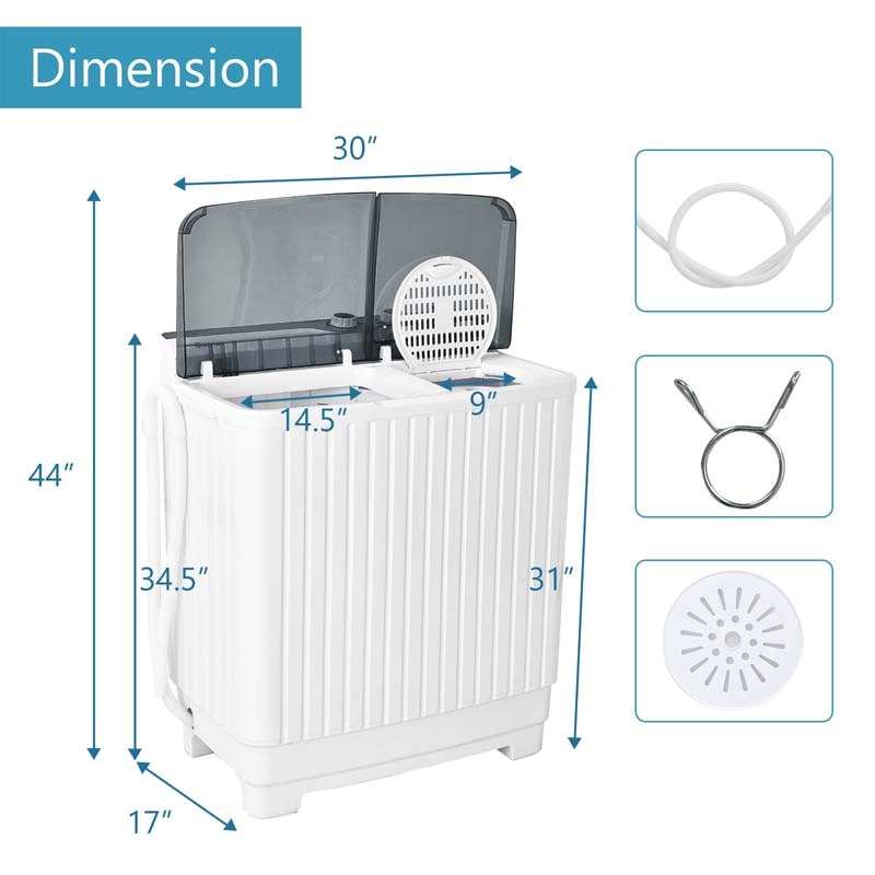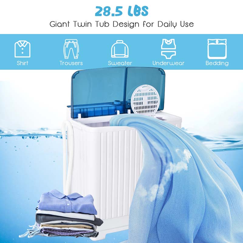 28.5 LBS Portable Washing Machine Built-in Drain Pump, 2-in-1 Twin Tub Top Load Washer Dryer Combo for RV Dorm