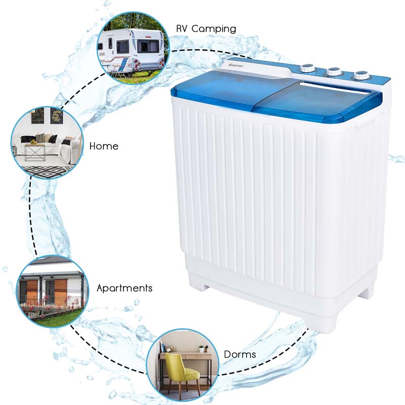 Save time, money, and effort with this compact twin tub washing machine. Combining both washing and spinning functions, it’s designed for efficiency and convenience. With a generous 20 lbs wash capacity and 8.5 lbs spin capacity, this unit is ideal for apartments, dorms, RVs, and more. Featuring powerful motors, timer controls, and multiple wash modes, this semi-automatic washer brings home convenience to tight spaces.
