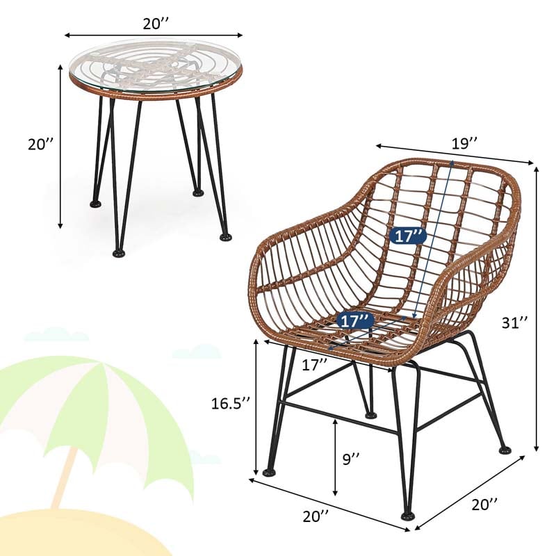 - Durable Rattan & Strong Frame: Crafted from high-quality PE rattan that resists the elements, this 3-piece set is designed for long-term outdoor use. A powder-coated steel frame and anti-slip foot pads add extra stability, helping prevent wobbling and wear from regular use.