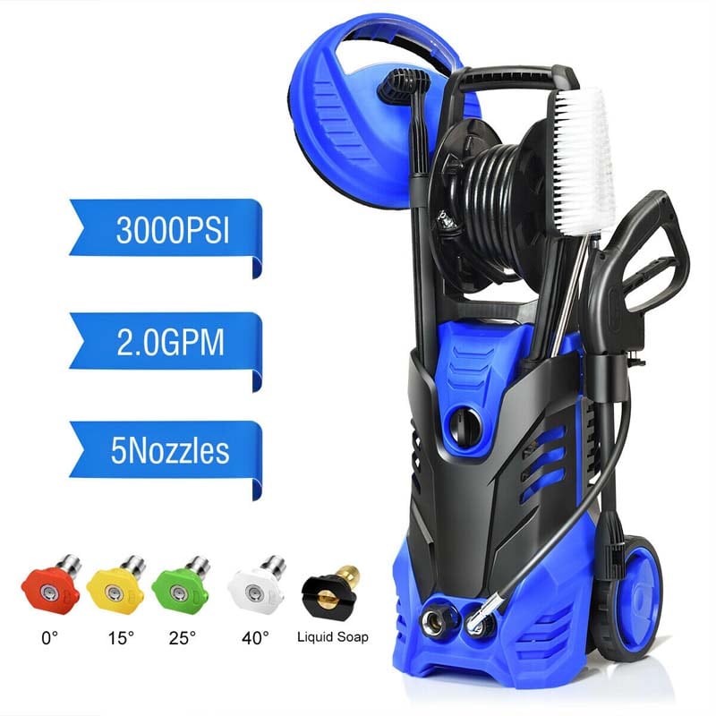 The powerful motor of this high-pressure washer delivers up to 3000 PSI and 2.0 GPM, giving you the strength to handle a wide range of heavy-duty cleaning tasks. It comes with five quick-connect nozzles (0°, 15°, 25°, 40°, and a soap nozzle) to suit various surfaces and applications—perfect for washing houses, vehicles, RVs, boats, patios, decks, driveways, and more.