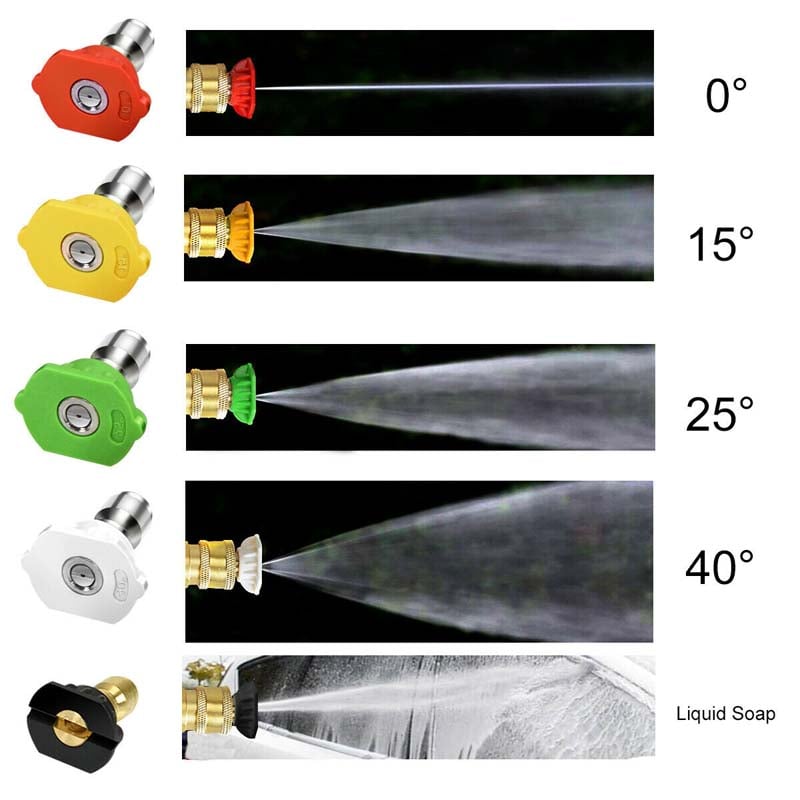 Five Quick-Connect Nozzles: Includes 0°, 15°, 25°, 40°, and soap nozzles, so you can adjust spray intensity and angle for different tasks, from gentle rinsing to intense pressure washing.