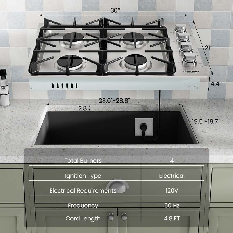 - Durable Stainless Steel Build: Crafted from high-grade 304 stainless steel and galvanized metal, this cooktop is built to withstand heat, wear, and daily use, ensuring reliable performance over time.