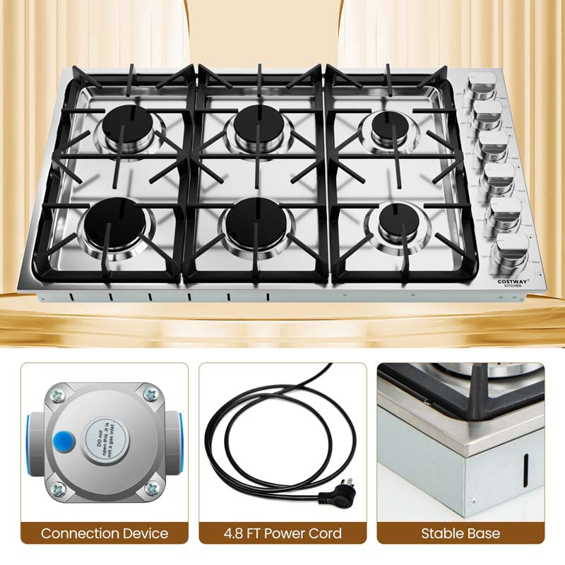 - User-Friendly Details: Each model features 4 or 6 ABS knobs with clear labels for easy burner identification and precise control; the included power cord and gas connection fitting add convenience for installation and use.