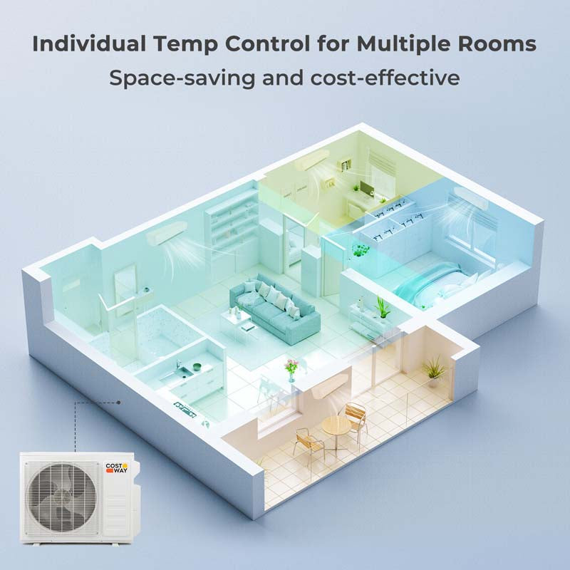 - Versatile Multi-Zone Cooling: This 36,000 BTU system supports 4 indoor units, offering independent temperature control across multiple rooms. The high-powered outdoor unit with an integrated heater ensures cooling in temps up to 131℉ and heating in temps down to -4℉.