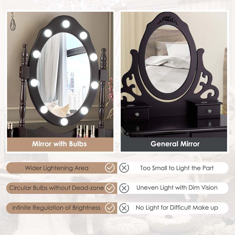 - Light Up Your Makeup Area: The mirror includes 10 bright LED bulbs with adjustable brightness levels to suit any lighting condition. The 360° rotatable mirror helps you find the best angle for flawless makeup.