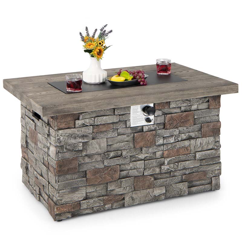 43.5" Faux Stone Rectangular Propane Fire Pit Table, 50000 BTU Gas Fire Table with Lava Rocks & PVC Cover